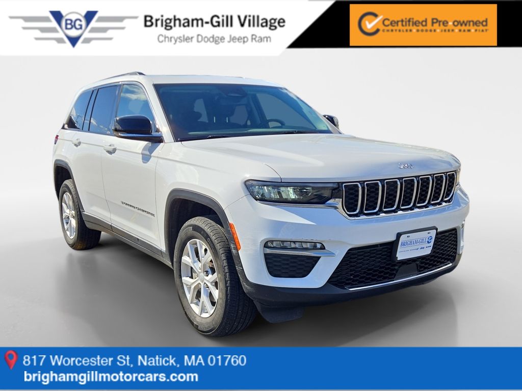 Brigham-Gill Village CDJR is proud to present you with another True Market Priced Pre-Owned Vehicle. This 2023 Jeep Grand Cherokee Limited FCA US LLC Certified Pre-Owned is loaded with the following Factory Options: 4WD, Dual-Pane Panoramic Sunroof, Navigation System, ParkView Rear Back-Up Camera, Power Liftgate, and Wheels: 18" x 8" Fully Painted Aluminum Quick Order Package 23E, FCA US LLC Certified Pre-Owned Certified, 4WD, Dual-Pane Panoramic Sunroof, Navigation System, ParkView Rear Back-Up Camera, Power Liftgate, Wheels: 18" x 8" Fully Painted Aluminum, 3.45 Rear Axle Ratio, 4-Wheel Disc Brakes, 6 Speakers, ABS brakes, Active Noise Control System, Air Conditioning, AM/FM radio: SiriusXM with 360L, Anti-whiplash front head restraints, Audio memory, Auto High-beam Headlights, Automatic temperature control, Brake assist, Bumpers: body-color, Capri Leatherette Seats, Compass, Delay-off headlights, Driver door bin, Driver vanity mirror, Dual front impact airbags, Dual front side impact airbags, Electronic Stability Control, Emergency communication system, Four wheel independent suspension, Front anti-roll bar, Front Bucket Seats, Front Center Armrest w/Storage, Front dual zone A/C, Front fog lights, Front License Plate Bracket, Front reading lights, Fully automatic headlights, Garage door transmitter, Heated door mirrors, Heated front seats, Heated rear seats, Heated steering wheel, Illuminated entry, Knee airbag, Low tire pressure warning, Memory seat, Molded In Color Black/Gloss Black Roof Rails, Normal Duty Suspension, Occupant sensing airbag, Outside temperature display, Overhead airbag, Overhead console, Panic alarm, Passenger door bin, Passenger vanity mirror, Power door mirrors, Power driver seat, Power passenger seat, Power steering, Power windows, Radio data system, Radio: Uconnect 5 Nav w/10.1" Display, Rear anti-roll bar, Rear reading lights, Rear window defroster, Rear window wiper, Remote keyless entry, Security system, Speed control, Speed-Sensitive Wipers, Split folding rear seat, Spoiler, Steering wheel mounted audio controls, Tachometer, Telescoping steering wheel, Tilt steering wheel, Traction control, Trip computer, Turn signal indicator mirrors, Variably intermittent wipers, and Voltmeter!! ONE OWNER, JEEP FACTORY CERTIFIED, 4X4, LEATHER, 4WD, Dual-Pane Panoramic Sunroof, Navigation System, ParkView Rear Back-Up Camera, Power Liftgate, Wheels: 18" x 8" Fully Painted Aluminum.