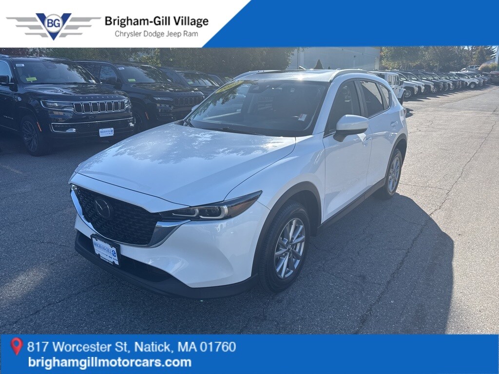 Recent Arrival! Brigham-Gill Village CDJR is proud to present you with another True Market Priced Pre-Owned Vehicle. This 2022 Mazda CX-5 2.5 S Preferred Package is loaded with the following Factory Options: AppLink/Apple CarPlay and Android Auto, Auto High-beam Headlights, Brake assist, Exterior Parking Camera Rear, Front Bucket Seats, Heated Front Bucket Seats, Infotainment System Voice Command, Leather Seat Trim, Power moonroof, Power passenger seat, Radio Broadcast Data System Program Information, Radio: AM/FM/HD Audio System, Rain sensing wipers, Remote keyless entry, SMS Text Msg Audio Delivery & Reply, Snowflake White Pearl Mica Paint, Steering wheel mounted audio controls, and Wheels: 17" x 7J Aluminum Alloy AppLink/Apple CarPlay and Android Auto, Auto High-beam Headlights, Brake assist, Exterior Parking Camera Rear, Front Bucket Seats, Heated Front Bucket Seats, Infotainment System Voice Command, Leather Seat Trim, Power moonroof, Power passenger seat, Radio Broadcast Data System Program Information, Radio: AM/FM/HD Audio System, Rain sensing wipers, Remote keyless entry, SMS Text Msg Audio Delivery & Reply, Snowflake White Pearl Mica Paint, Steering wheel mounted audio controls, Wheels: 17" x 7J Aluminum Alloy, 4-Wheel Disc Brakes, 4.624 Axle Ratio, 6 Speakers, ABS brakes, Air Conditioning, Alloy wheels, AM/FM radio, Auto-dimming Rear-View mirror, Automatic temperature control, Bose Audio Credit, Bumpers: body-color, Delay-off headlights, Driver door bin, Driver vanity mirror, Dual front impact airbags, Dual front side impact airbags, E911 Automatic Emergency Notification, Electronic Stability Control, Emergency communication system: MAZDA CONNECT, Four wheel independent suspension, Front anti-roll bar, Front Center Armrest w/Storage, Front dual zone A/C, Front reading lights, Fully automatic headlights, Garage door transmitter: HomeLink, Heated front seats, Illuminated entry, Leather Shift Knob, Low tire pressure warning, Memory seat, Multifunction Commander Control, Occupant sensing airbag, Outside temperature display, Overhead airbag, Overhead console, Pandora, Panic alarm, Passenger door bin, Passenger vanity mirror, Power door mirrors, Power driver seat, Power steering, Power windows, Radio data system, Rear anti-roll bar, Rear reading lights, Rear seat center armrest, Rear window defroster, Rear window wiper, Roof Rack Side Rails, Speed control, Speed-sensing steering, Split folding rear seat, Spoiler, Tachometer, Telescoping steering wheel, Tilt steering wheel, Traction control, Trip computer, Turn signal indicator mirrors, and Variably intermittent wipers!! CLEAN CARFAX/ACCIDENT-FREE HISTORY REPORT, ONE OWNER, BLUETOOTH/HANDS FREE CELL PHONE SYSTEM, ALL WHEEL DRIVE, LEATHER, MOONROOF/SUNROOF, AppLink/Apple CarPlay and Android Auto, Auto High-beam Headlights, Brake assist, Exterior Parking Camera Rear, Front Bucket Seats, Heated Front Bucket Seats, Infotainment System Voice Command, Leather Seat Trim, Power moonroof, Power passenger seat, Radio Broadcast Data System Program Information, Radio: AM/FM/HD Audio System, Rain sensing wipers, Remote keyless entry, SMS Text Msg Audio Delivery & Reply, Snowflake White Pearl Mica Paint, Steering wheel mounted audio controls, Wheels: 17" x 7J Aluminum Alloy.